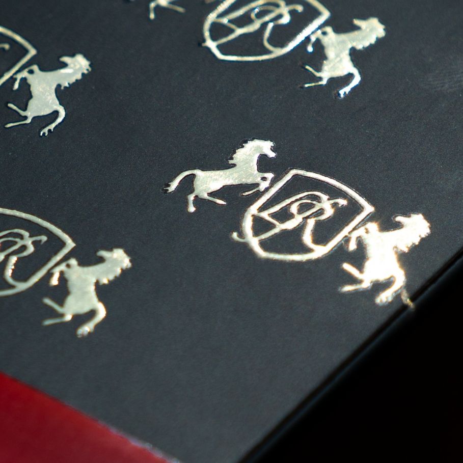 La laminazione con foil applica lamine metalliche brillanti su dettagli grafici, per un effetto esclusivo e raffinato.